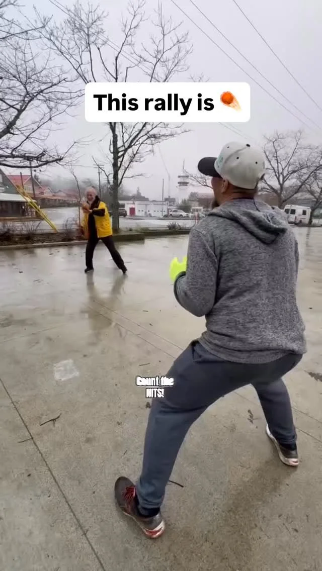 Break into teams and race to 100 hits. If the ball hits the ground, lose 10 points. If it bounces once and you save the rally, only lose 5 points. Fastest team to 100 hits wins.